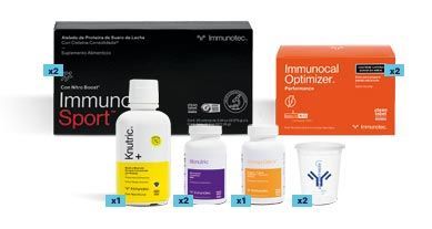 Incluye: 2 Immunocal Sport, 2 Optimizer Performance, 2 Bionutric, 1 Knutric+ Sin Azúcar, 1 Omega Gen V, 2 vasos