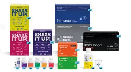 Incluye: 3 Immunocal Mx, 2 Immunocal Platinum, 2 Immunocal Sport, 2 Optimizer Performance, 3 Optimizer R&V, 1 Shake It Up! Vainilla, 1 Shake It Up! Chocolate**, 1 Shake It Up! Fresa, 2 Knutric+ Sin Azúcar, 2 Zenity, 2 Probiótico 3+, 1 Bionutric, 1 KLC-D, 2 Omega Gen V, 2 Multi+ Resveratrol, 4 vasos